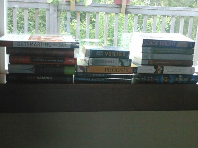 After going through each bookshelf and carefully deciding what I wanted to keep and what I wanted to get rid, this is what I came up with. I don't know what to do with them yet; host giveaways, donate, or sell them to my used local book store...I'll have to think about it some more (: